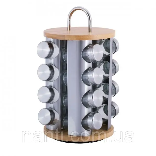 У комплект входить підставка для ємностей. Набір для спецій крутиться підставці складається з 17 предметів (підставка + 16 баночок). При дбайливому та правильному використанні цей набір послужить Вам довго та ефективно.